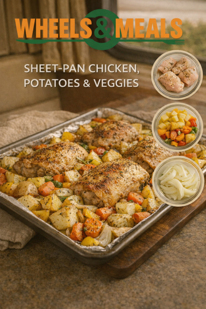This cozy sheet-pan chicken dinner is perfect for winter RVing—simple, hearty, and full of flavor. Juicy roasted chicken pairs with tender potatoes and vegetables for an easy, one-pan meal that warms you up after a day on the road.